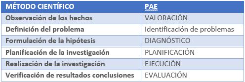- Marriner (1983): el PAE es la aplicación de la resolución científica de problemas, a los cuidados de enfermería.
