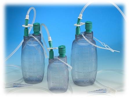 - Reservorio de silicona-Bulbo: drenaje de bajo vacío (hasta 100 mmHg) y una capacidad de 100-400 ml. Fabricado en silicona y de accionamiento manual, con válvula antirreflujo y conectado a una bolsa de recogida.