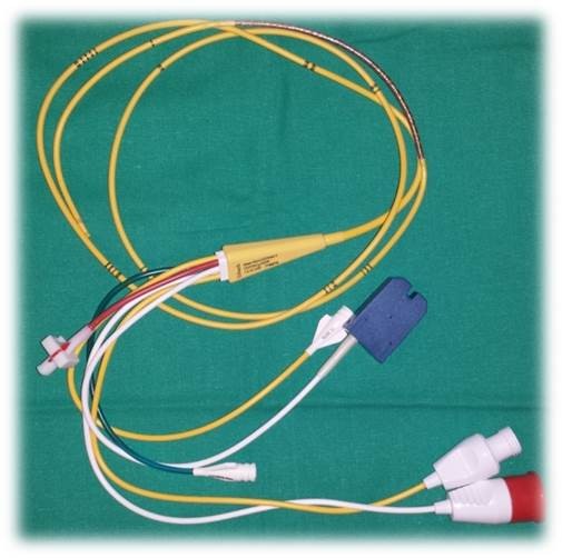 Catéter multiluz destinado a medir las presiones derechas del corazón, estimar el gasto cardiaco y obtener muestras de sangre venosa central. Su extremo distal está alojado en la arteria pulmonar.