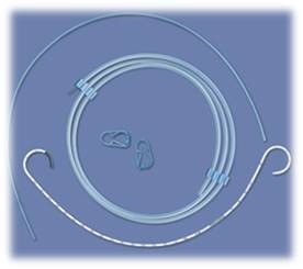 - Tipo Doble “J”: catéter de poliuretano multiperforado con curvatura en ambos extremos, radiopaco, con guía metálica revestida de teflón.