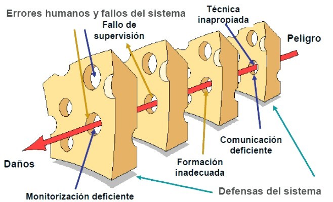 Se trata de un sencillo, pero gráficamente poderoso modelo, elaborado por el Profesor James Reason, que proporcionó un medio para comprender cómo cualquier sistema de producción funciona con éxito o se dirige al fracaso.