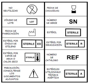 Los datos relacionados con los productos sanitarios pueden adoptar, cuando sea apropiado, la forma de símbolos. Los símbolos y los colores de identificación que se utilicen deberán ajustarse a las normas armonizadas. Si no existe ninguna norma al respecto, los símbolos y los colores se describirán en la documentación que acompañe al producto.
