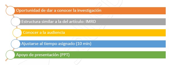 Una comunicación oral efectiva requiere una preparación meticulosa, donde el contenido debe ser presentado de manera clara y concisa, asegurando que el mensaje central sea comprendido por la audiencia. Es fundamental elegir un foro adecuado que esté alineado con la temática del trabajo a presentar, garantizando así la relevancia y el interés del público objetivo (31).
