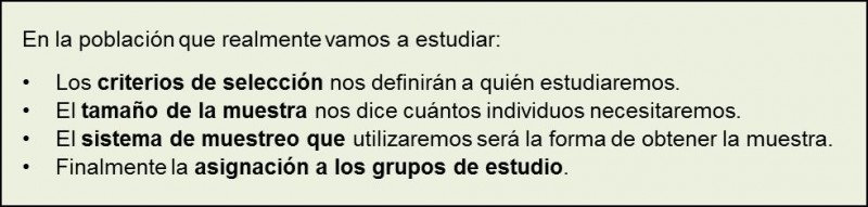 Ahora bien, generalmente no toda la población accesible será válida para el estudio, por lo que los investigadores deben especificar los criterios que definen quienes deben incluirse y quiénes no. Este proceso de selección va a delimitar a la población elegible.