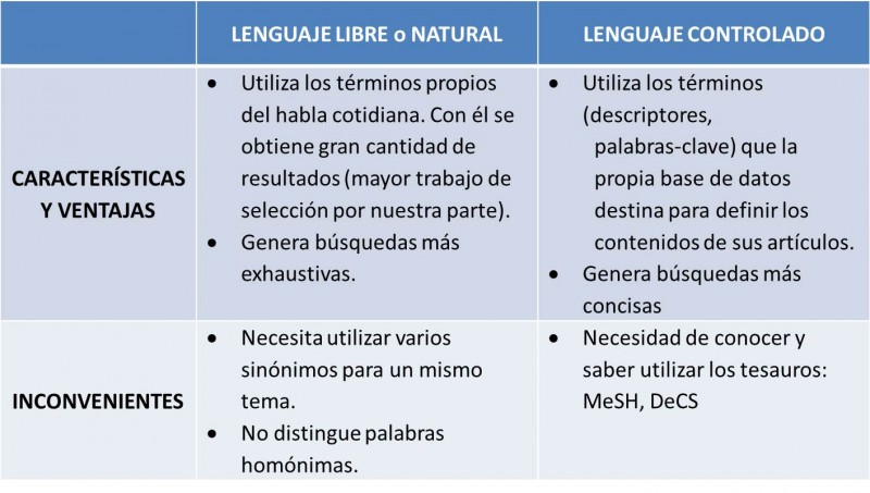 Se pueden realizar búsquedas bibliográficas a través de lenguaje natural, pero se pierde precisión.