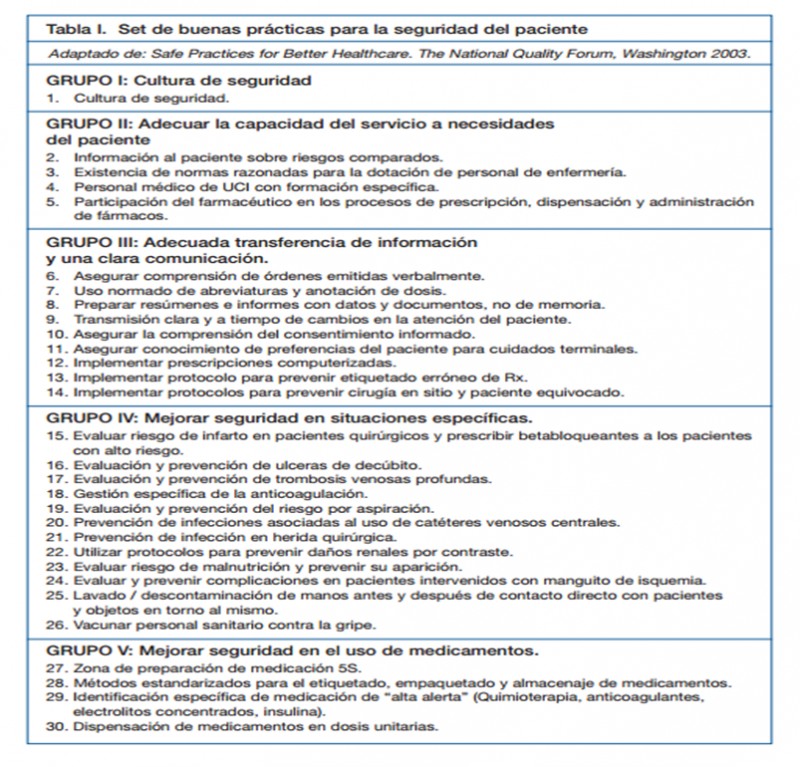 Fuente: Construcción y validación de indicadores de buenas prácticas sobre seguridad del paciente. Madrid: Ministerio de Sanidad y Consumo; 2008