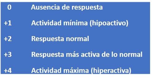 Tabla 1. Escala de puntuación de las respuestas reflejas. |