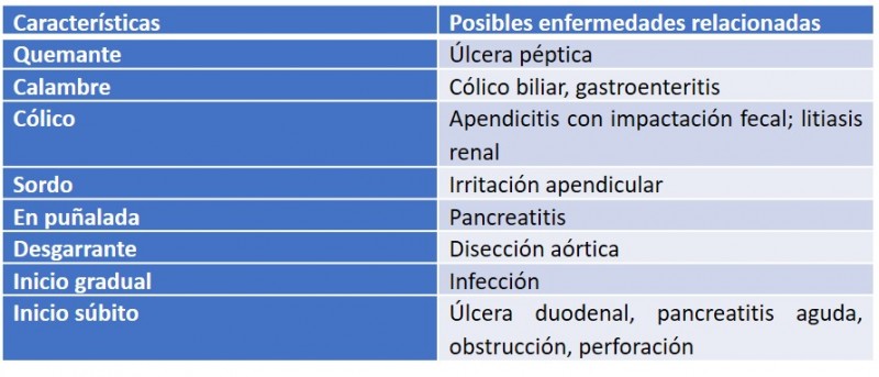 Tabla 1. Características del dolor abdominal y enfermedades relacionadas.