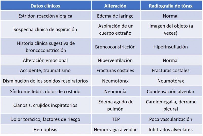 Tabla 2. Aproximación diagnóstica a la disnea según los datos clínicos y radiográficos.