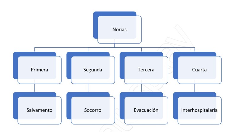 Las norias de evacuación es el procedimiento que moviliza a los pacientes entre las diferentes áreas