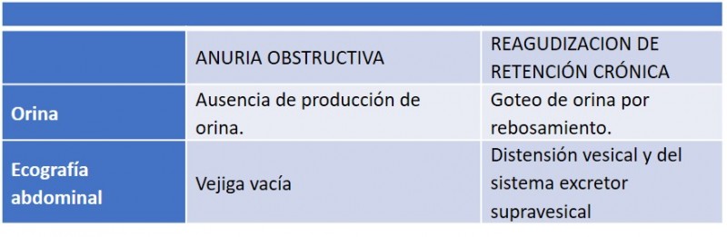Tabla 9: Diagnóstico diferencial de la retención aguda de orina