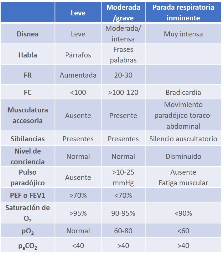 Tabla 9. Valoración de la gravedad de las crisis asmáticas según la exploración física.