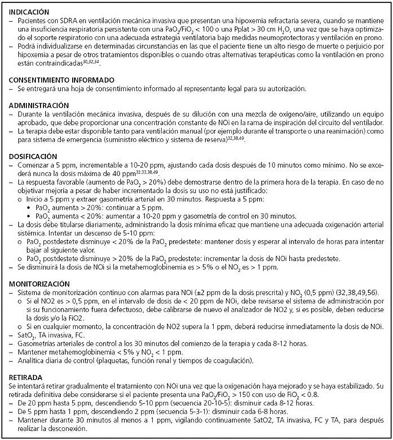 - Monsalve-Naharro José Ángel, Domingo-Chiva Esther, García Castillo Sergio, Cuesta-Montero Pablo, Jiménez-Vizuete José María. Óxido nítrico inhalado en pacientes adultos con síndrome de distrés respiratorio agudo. Farm Hosp. [Internet]. 2017 Abr; 41( 2 ): 292-312. Disponible en: http://scielo.isciii.es/scielo.php?script=sci_arttext&pid=S1130-63432017000200292&lng=es.