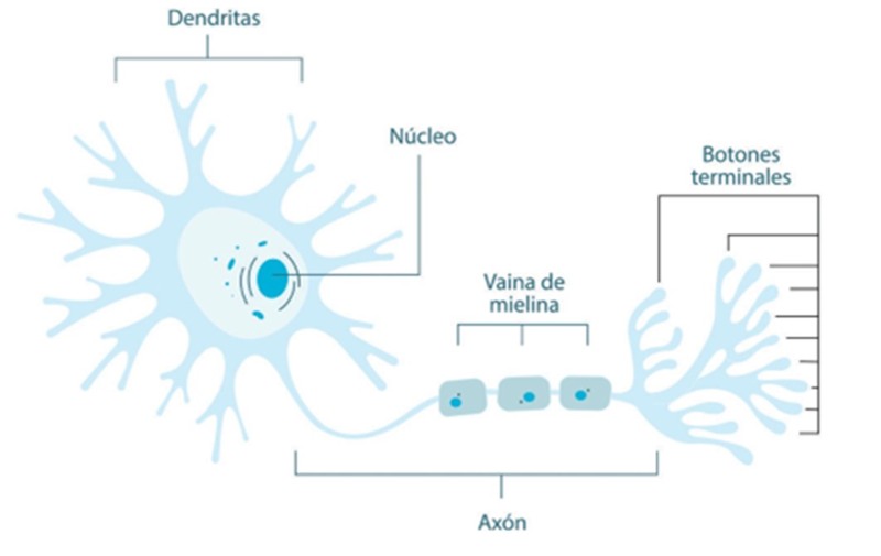 - Botones o extremos terminales: ramificaciones del axón para hacer la conexión con la siguiente neurona.