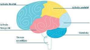 - Temporal: olfato, oído y orientación espacial. En la línea media entre ambos lóbulos temporales está el sistema límbico: memoria, aprendizaje y afectos (miedo, alegría...).