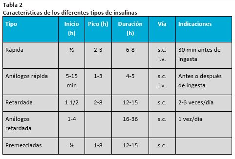 o Bomba de inyección s.c. de insulina: se administra insulina de forma continua, con una dosis basal y bolos previos a comidas. Deben realizarse controles de glucemia.