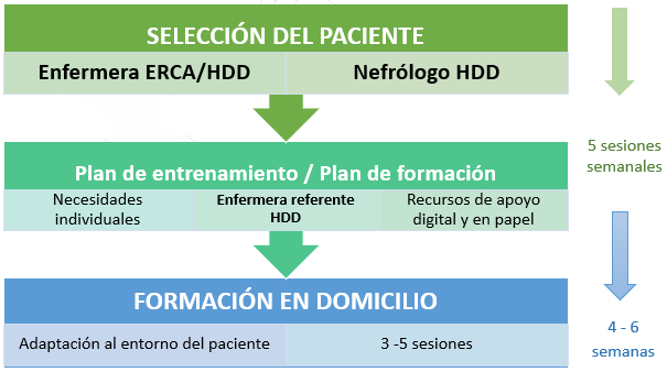 Una vez hecha la elección por parte del paciente, en el momento de planificar el entrenamiento de hemodiálisis domiciliaria, es muy útil aplicar la metodología de pedagogía activa, consiguiendo así ordenar todos los aspectos a transmitir y/o para tener en cuenta en la formación al paciente y/o al cuidador.