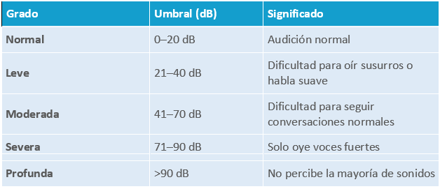 Tabla 3. Resultados típicos en el audiograma