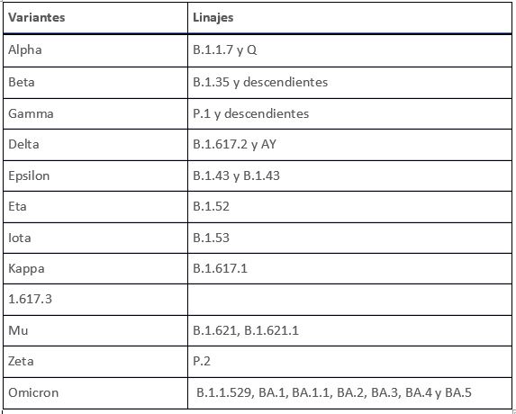 Los virus evolucionan de manera continuada a través de cambios en su código genético que pueden estar producidos bien por mutaciones o por la recombinación viral en el proceso de replicación del virus. Un linaje es un grupo de variantes relacionadas genéticamente que proceden de un virus común original (ancestro). Cada variante tiene una serie de mutaciones que la diferencian de las otras del virus del SARS-CoV-2. Un recombinante es un tipo de variante que se origina por la combinación de material genético de dos variantes diferentes. Se han documentado múltiples variantes del SARS-CoV-2 a nivel mundial durante esta pandemia.