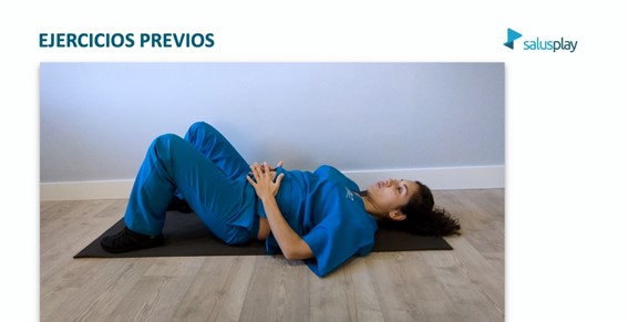 Para activar el transverso del abdomen nos colocaremos en decúbito supino con las piernas flexionadas y con la ayuda de la respiración, al soltar el aire meteremos el ombligo hacia adentro sin que la pelvis se mueva y a la vez activaremos el suelo pélvico (contraer la musculatura perineal como se quisiéramos cortar la orina). Debemos mantener durante 5 segundo esta posición y repetir 6 veces.