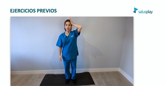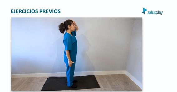 Como calentamiento previo realizaremos unos movimientos semicirculares lentos del cuello, para mejorar su movilidad y calentar la zona cervical. Se pueden realizar tanto sentado como de pie (5 repeticiones a ambos lados).