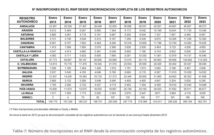 La cifra de inscripciones ha aumentado anualmente desde la sincronización completa del Registro, pero esta suma es muy baja a pesar del desarrollo legislativo.