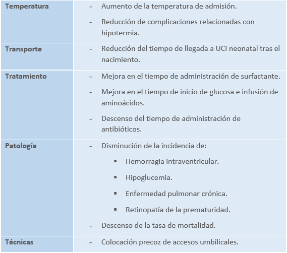 El primer momento de vida de un recién nacido, especialmente en casos de nacimientos prematuros o con bajo peso al nacer (<1500g / <1000g), es de vital importancia en cuanto a la atención médica se refiere. Durante esta primera hora, los procedimientos médicos establecidos pueden prevenir y tratar varios problemas comunes en estos neonatos, además de facilitar su adaptación adecuada a la vida fuera del útero.