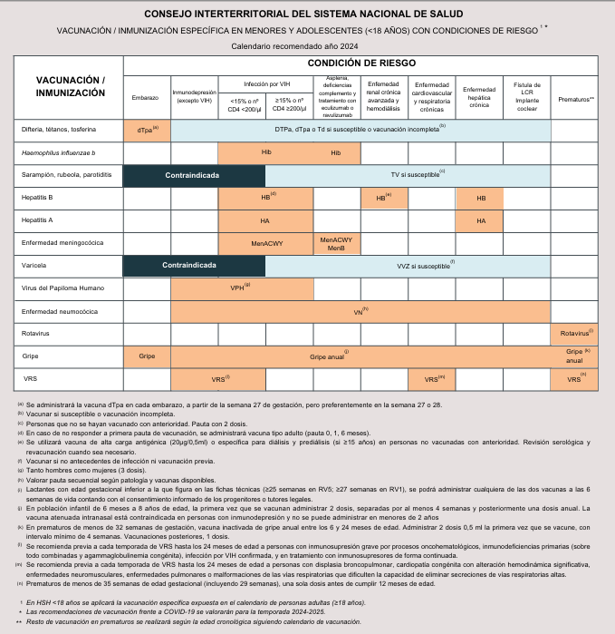 En casos de prematuridad no cubiertos por las recomendaciones estándar, se debe evaluar la vacunación de manera individualizada.