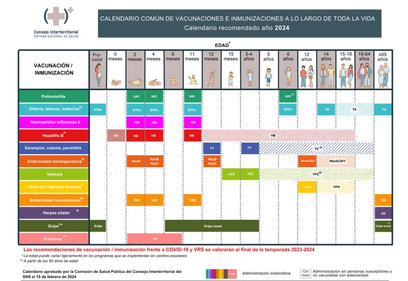 Calendario común de vacunaciones e inmunizaciones a lo largo de toda la vida.