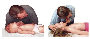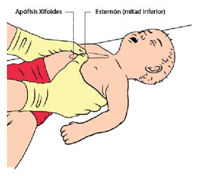 - Compresión con dos dedos: técnica utilizada para lactantes y niños pequeños, donde el reanimador comprimirá con el dedo índice y corazón de su mano dominante sobre el tercio inferior del esternón.