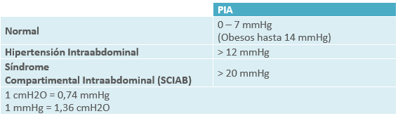 Esta medida, se haya relacionada con la Presión de Perfusión Abdominal, presión necesaria para garantizar el flujo sanguíneo adecuado a los órganos intraabdominales.