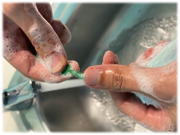Imágenes 33 y 34. Cepillado de las uñas y espacios interdigitales