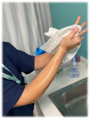 Imágenes 36 y 37. Secado con toallas desechables estériles