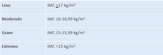 Se considera peso significativamente bajo en adultos IMC 18,5Kg/m2 y en niños y niñas un percentil 5.