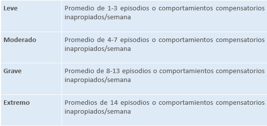 La gravedad se relaciona con la frecuencia de comportamientos compensatorios inapropiados: