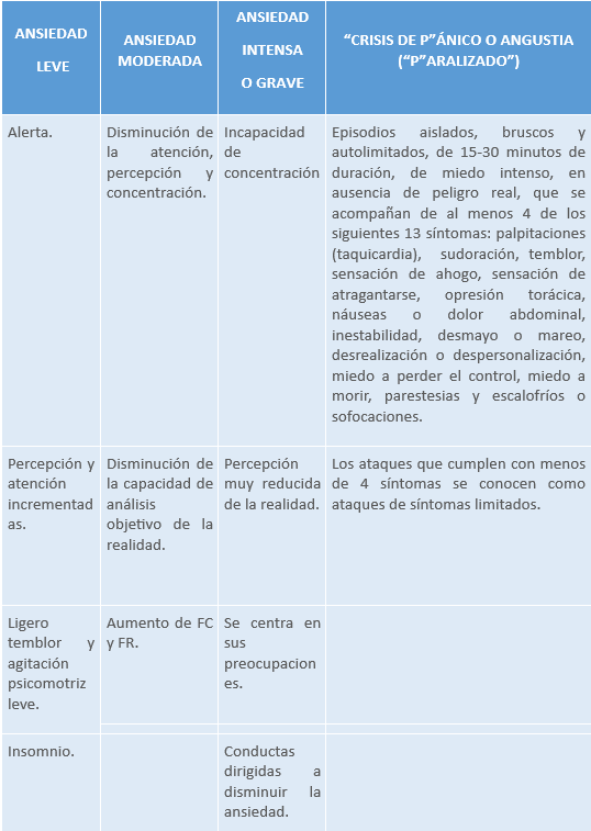 Tabla 16. Hildegard Peplau diferenció 4 grados o niveles de ansiedad