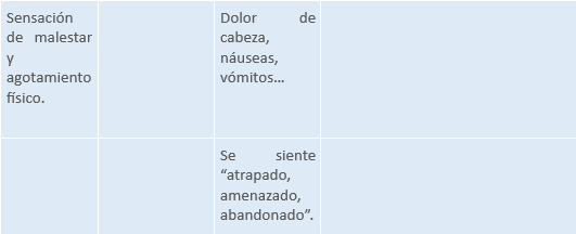 - Alta frecuencia de síntomas somáticos (dolor abdominal, cefalea, fatiga, disnea, palpitaciones).