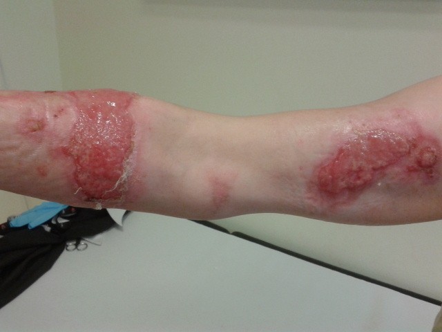 Evaluar la herida, examinando su profundidad, extensión, localización, dolor, agente causal, exudación, granulación o tejido necrótico, epitelización y signos de infección