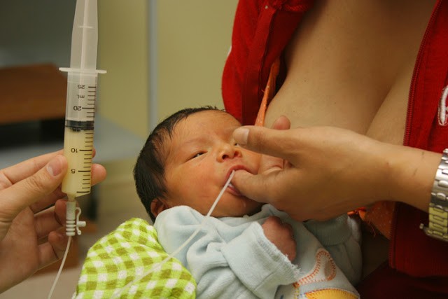 Motivo de consulta: Ingresa mujer de 29 años al servicio de neonatología con su bebé prematuro de 35 semanas de gestación con apgar de 7 por precisar incubadora para maduración orgánica del bebé y enseñar a la madre la técnica de la lactancia materna ya que refiere tener dificultades para hacerlo. La madre ha llegado a la unidad después de realizarsele una cesárea de urgencia en quirófano por prolapso de cordón umbilical. Antecedentes personales de la madre: . Primípara por cesárea. . No alergias conocidas. . No hábitos tóxicos. . Ex fumadora desde hace 4 años ( 9 cigarrilos/día) . No medicación habitual . Amigdalectomía Antecedentes personales del bebé prematuro: . Peso: 2.050 g . Talla: 46 cm . Perímetro cefálico: 29 cm . Perímetro torácico: 28 cm