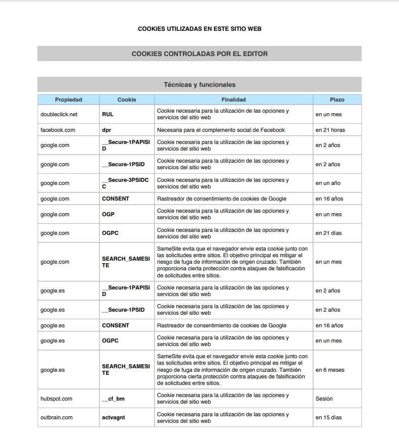 - Cookies técnicas y funcionales: son aquellas que permiten al usuario la navegación a través de una página web, plataforma o aplicación y la utilización de las diferentes opciones o servicios que en ella existan.