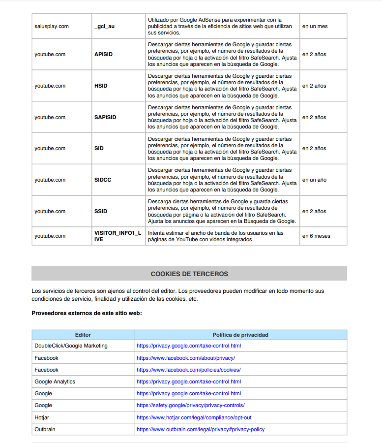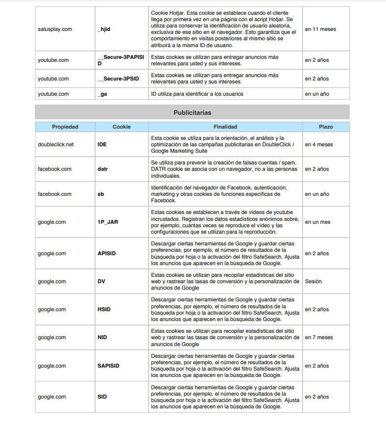 Las cookies y otras tecnologías similares tales como local shared objects, flash cookies o píxeles, son herramienta empleadas por los servidores Web para almacenar y recuperar información acerca de sus visitantes, así como para ofrecer un correcto funcionamiento del sitio. Mediante el uso de estos dispositivos se permite al servidor Web recordar algunos datos concernientes al usuario, como sus preferencias para la visualización de las páginas de ese servidor, nombre y contraseña, productos que más le interesan, etc.